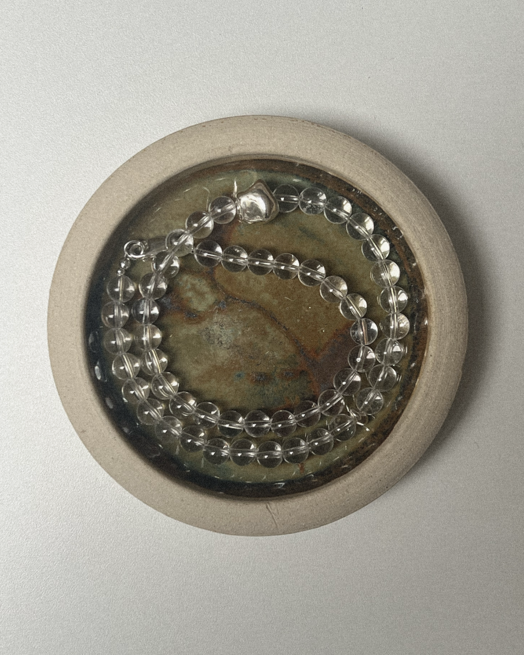 Clear quartz is associated with clarity, focus, and energetic amplification, often thought to cleanse and uplift. Silver brings balance and reflection, grounding the brightness of the quartz with subtle depth. Together, they create a piece that feels light yet steady - radiant, balanced, and quietly empowering.