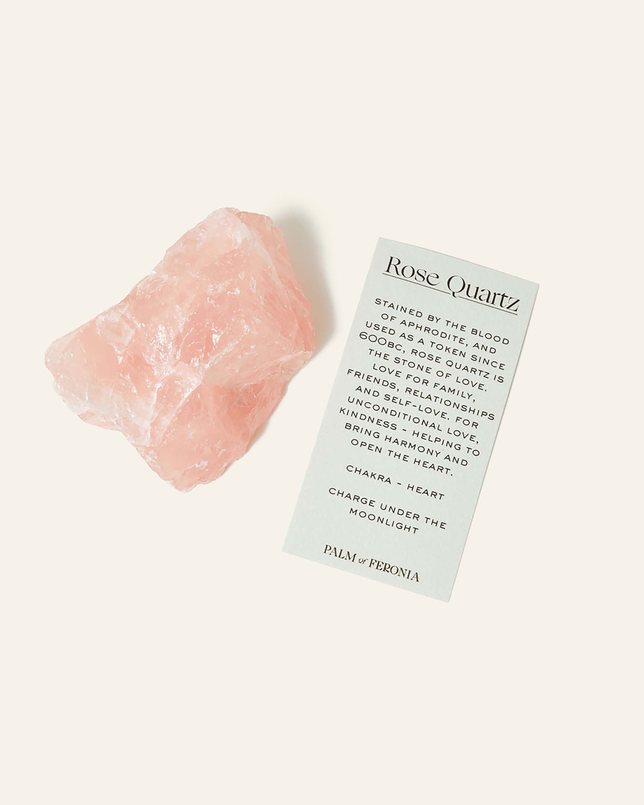 Rose quartz, stained by the blood of Aphrodite and used as a token of affection since 600 BC, is known as the stone of love. It embodies love for family, friends, relationships, and self-love, fostering unconditional love, kindness, and harmony—opening the heart.