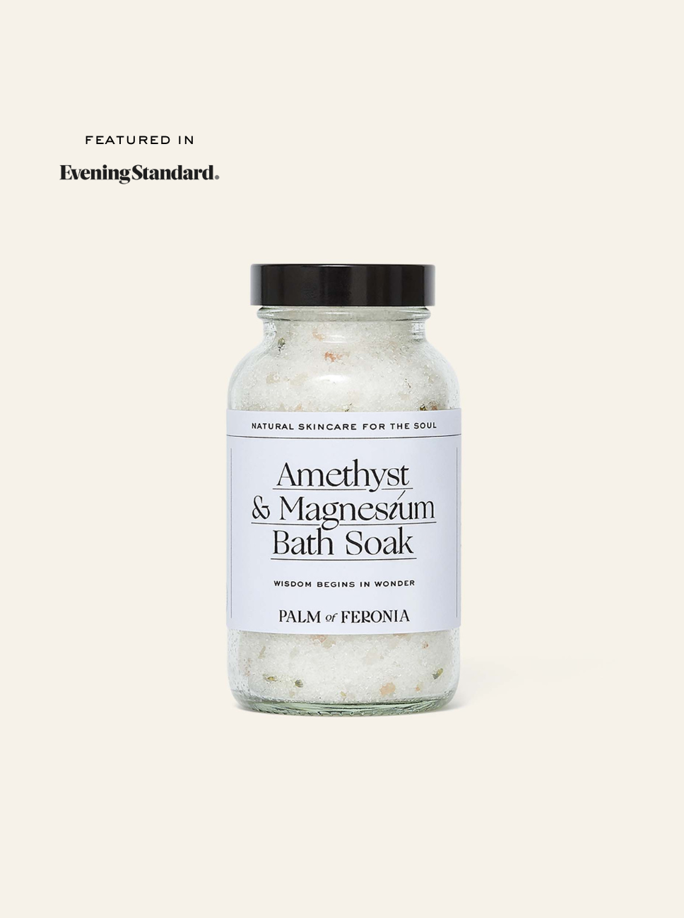 This mix of calcium-rich Himalayan salt, sea salt, and Epsom salt—magnesium-rich and historically used for sleep and muscle recovery—helps to relax and restore. Infused with smooth, meditative amethyst to reset spiritually, it’s enhanced with calming juniper berry, bergamot, and clary sage, while lavender buds harmoniously relax the mind and body for a restorative night’s sleep.