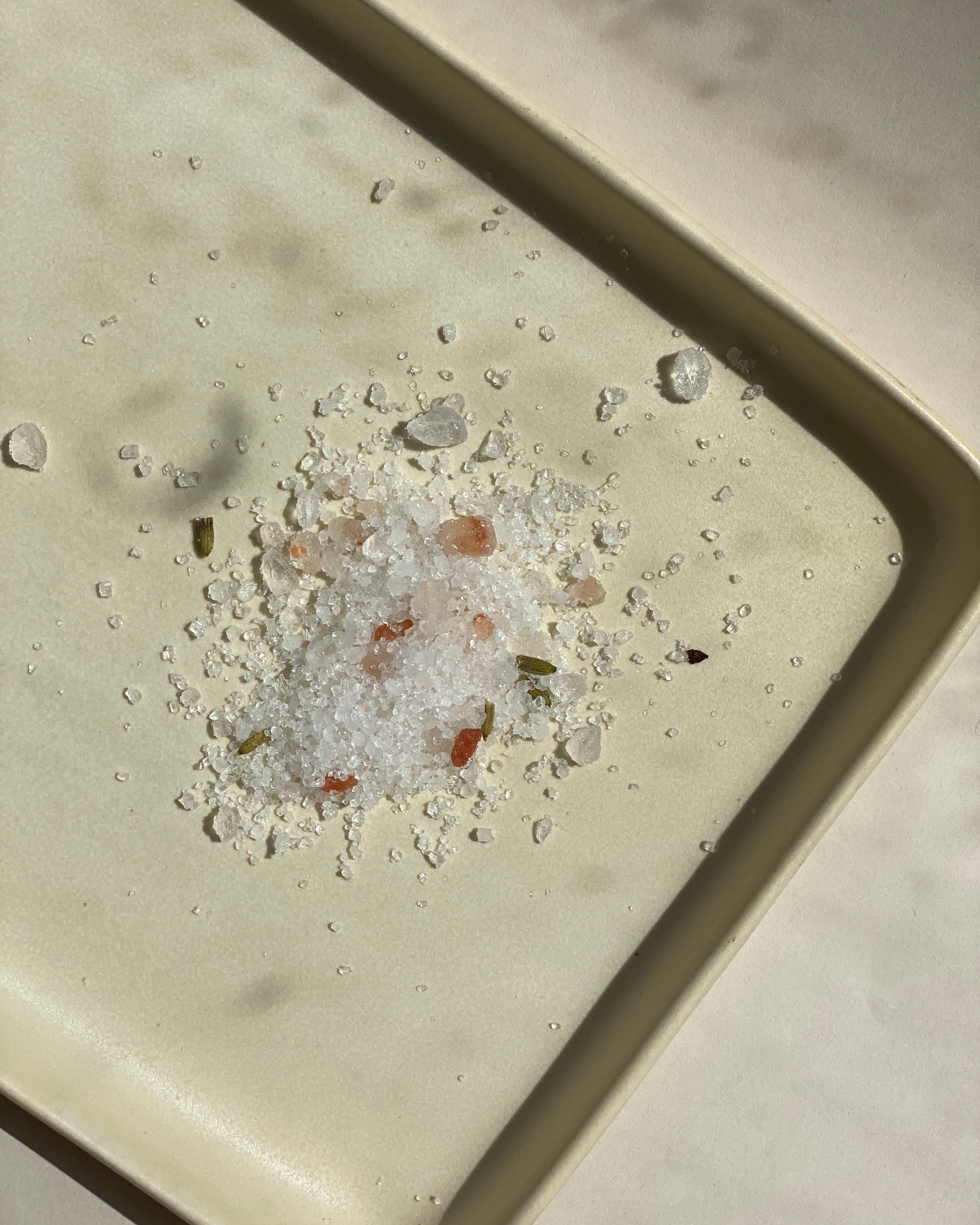 Add a small handful to a warm, running bath. Swirl and allow to dissolve before sinking in. For the ultimate self-care bath ritual, pair with our Grounding Bath Elixir or Hinoki Self-Massage Oil.
