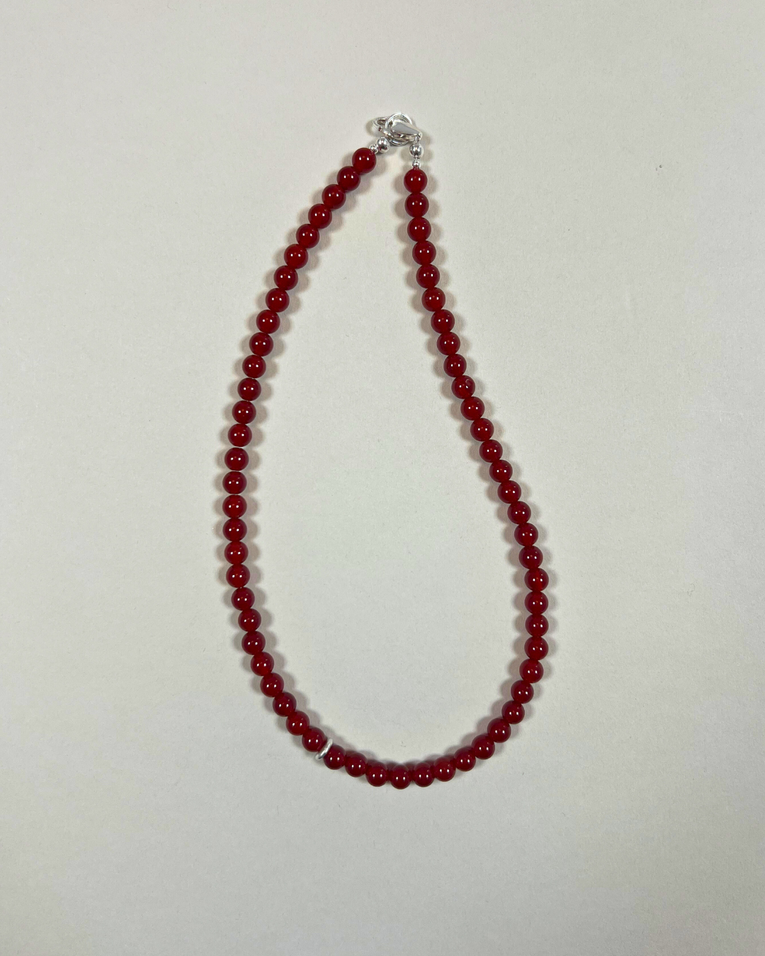Carnelian Essential Necklace featuring 6 mm bright red carnelian beads with a single fine silver stud bead accent. All findings and clasp are sterling silver.