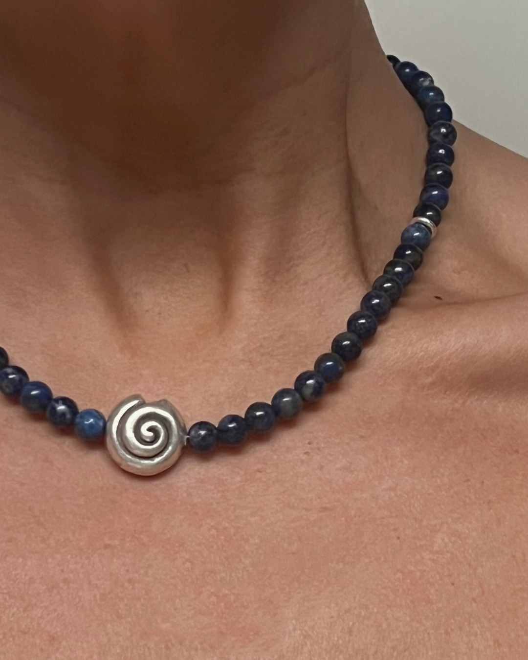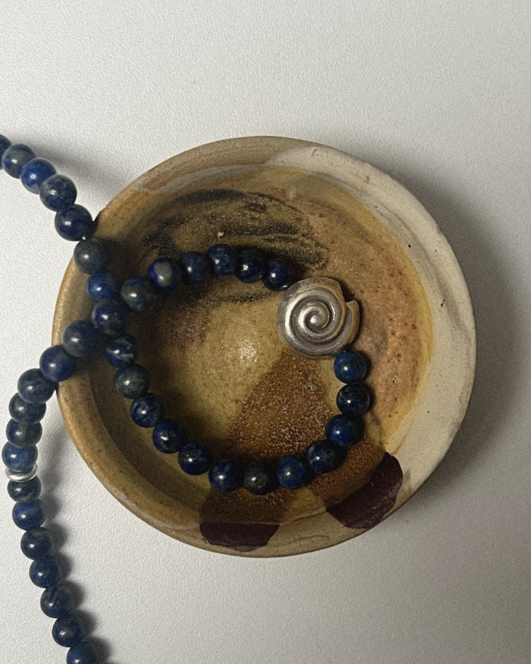 Lapis lazuli carries a deep, contemplative energy - a stone of truth, insight, and inner wisdom. The fine silver spiral symbolises growth and flow, adding a sense of movement to the rich blue stones. Together, they create a piece that feels serene, expressive, and timeless.