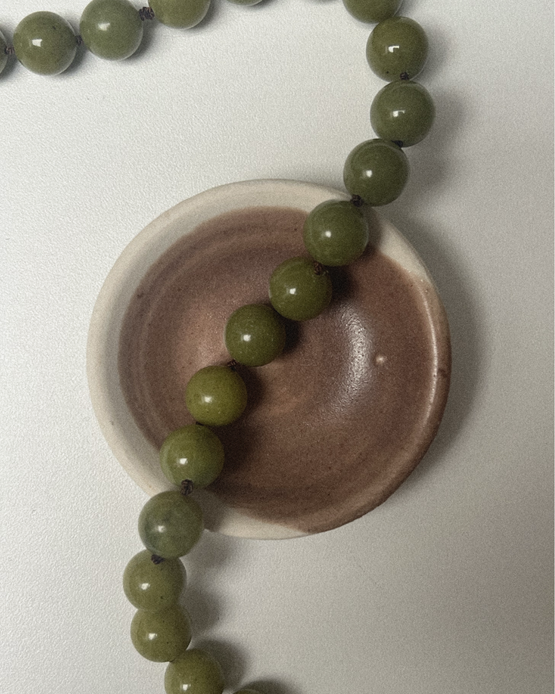 Olive jade is grounding and restorative, known to bring harmony, balance, and calm focus. Its gentle green tones and smooth weight offer a quiet sense of stability and connection to nature. This heirloom piece feels steady, elegant, and timeless - a subtle reflection of grounded strength.