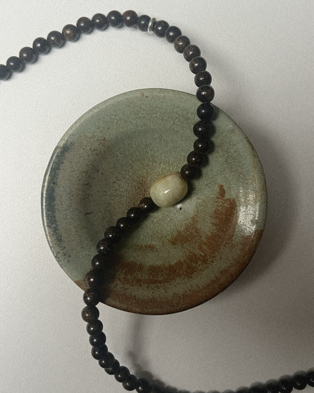 To prevent tarnishing, we recommend removing your necklace before bathing, swimming, or exercising. Store it away from humidity and direct sunlight—each piece comes with a soft cotton pouch for safekeeping. Perfume, lotions, and cleaning products may affect the silver and stones, so allow skincare to absorb before wearing. Over time, silver may develop a patina, which can be gently polished with a soft cloth.