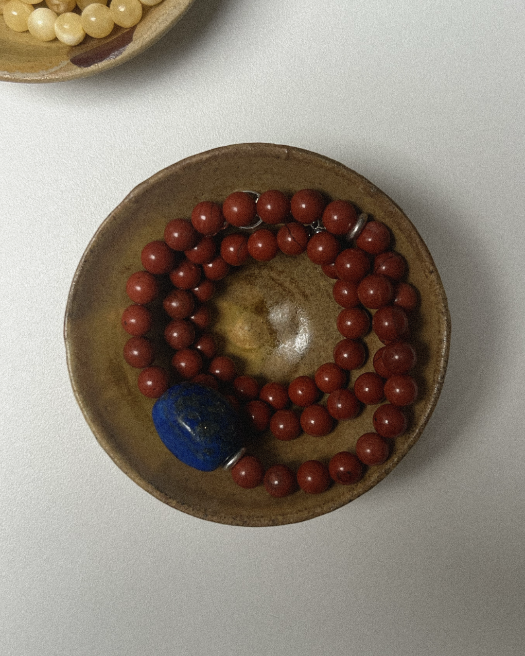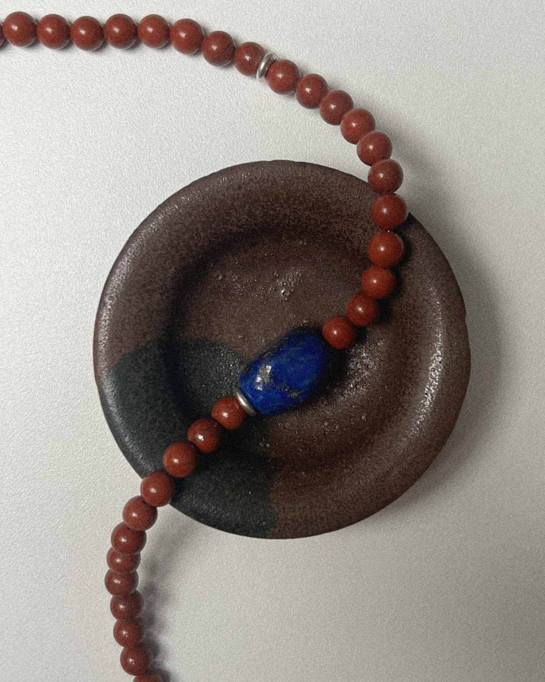 Red jasper is associated with grounding, vitality, and resilience, offering steady, stabilising energy. Lapis lazuli is linked to truth, wisdom, and self-expression, encouraging clarity and confidence, while silver brings balance and reflection. Together, they create a piece that feels strong yet thoughtful - grounding, expressive, and quietly powerful.