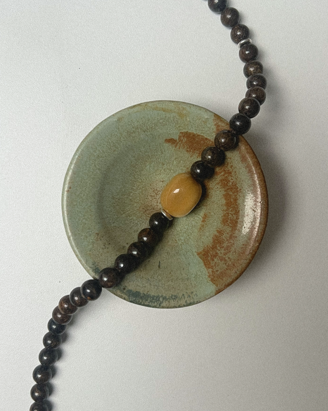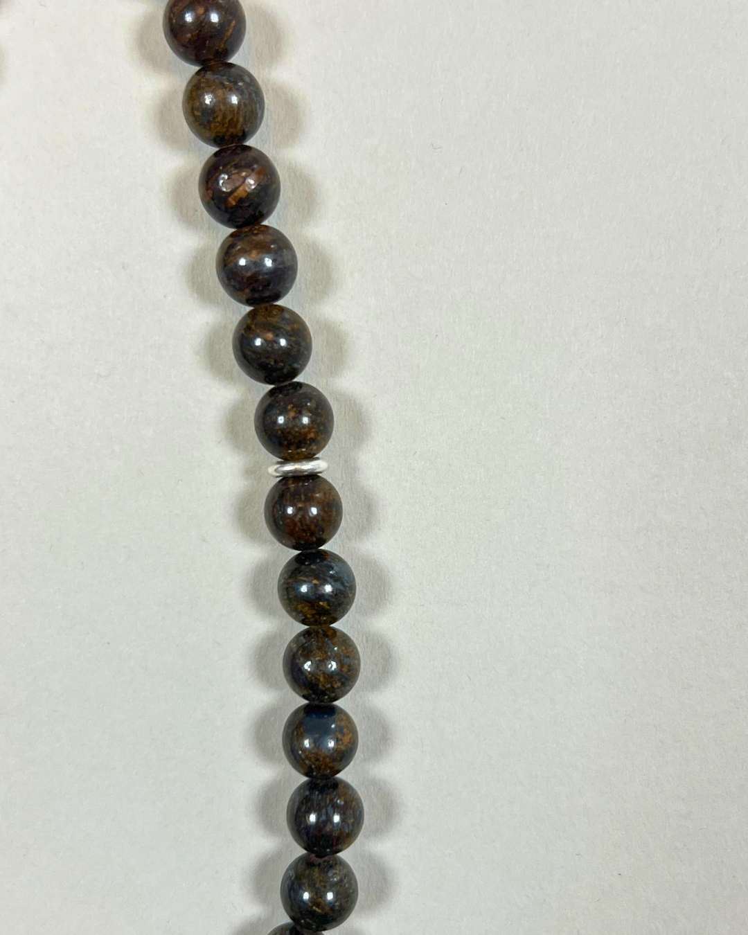 Bronzite is known for its grounding and stabilising qualities, offering a steady, protective presence through its warm brown tones and natural sheen. Mookaite jasper brings earthy vitality and balance, often associated with confidence, adaptability, and a strong connection to place. The fine silver accents add quiet points of light, bringing the composition into gentle focus. Together, they create a piece that feels anchored, assured, and deeply rooted.