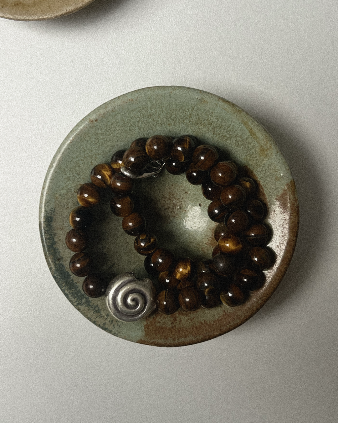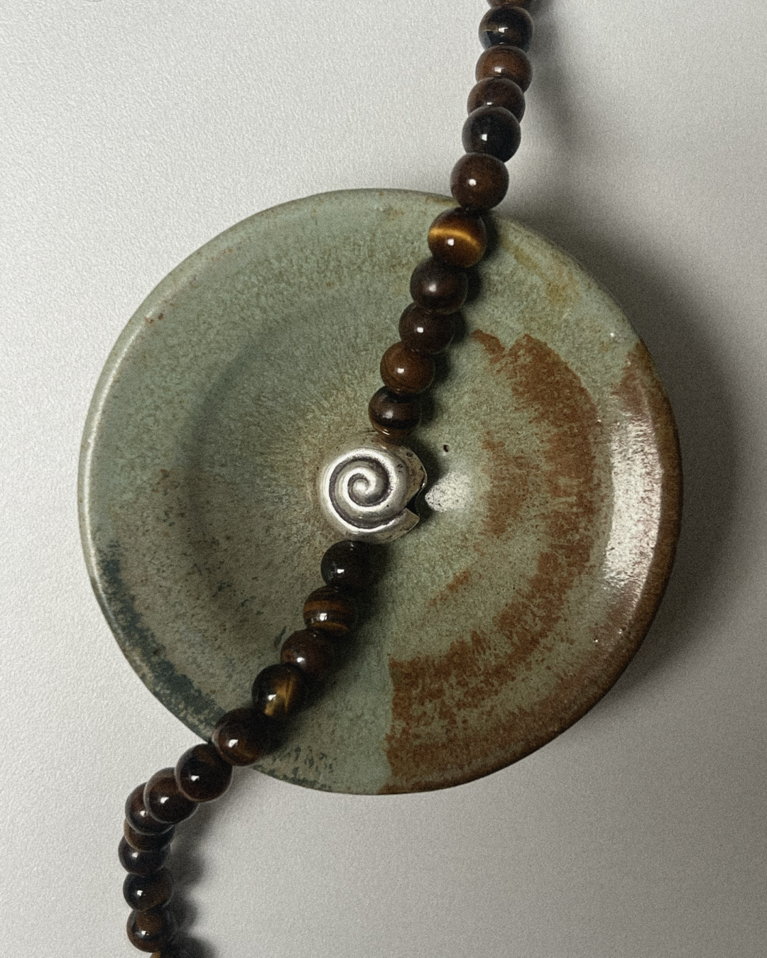 Tiger eye is linked to confidence, grounding, and protection, known for its steady, strengthening energy. The silver spiral symbolises rhythm, flow, and quiet transformation, while silver itself brings balance and reflection. Together, they create a piece that feels bold yet balanced - grounding, radiant, and quietly empowering.