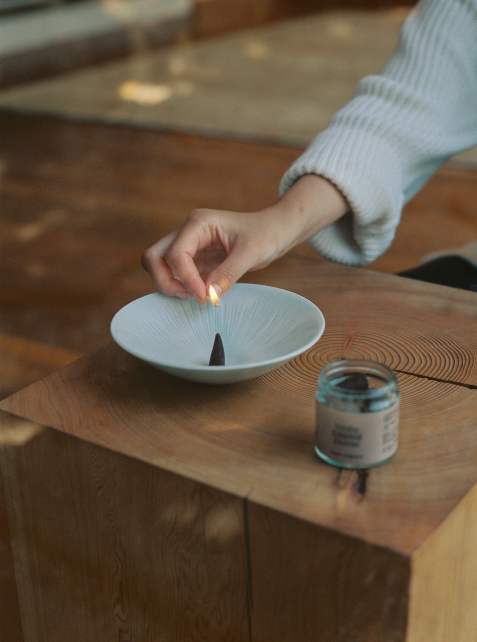 Always ensure that the incense is fully extinguished before handling or discarding any ash. Store unused cones inside the jar to prevent the essential oils from coming into contact with surfaces.