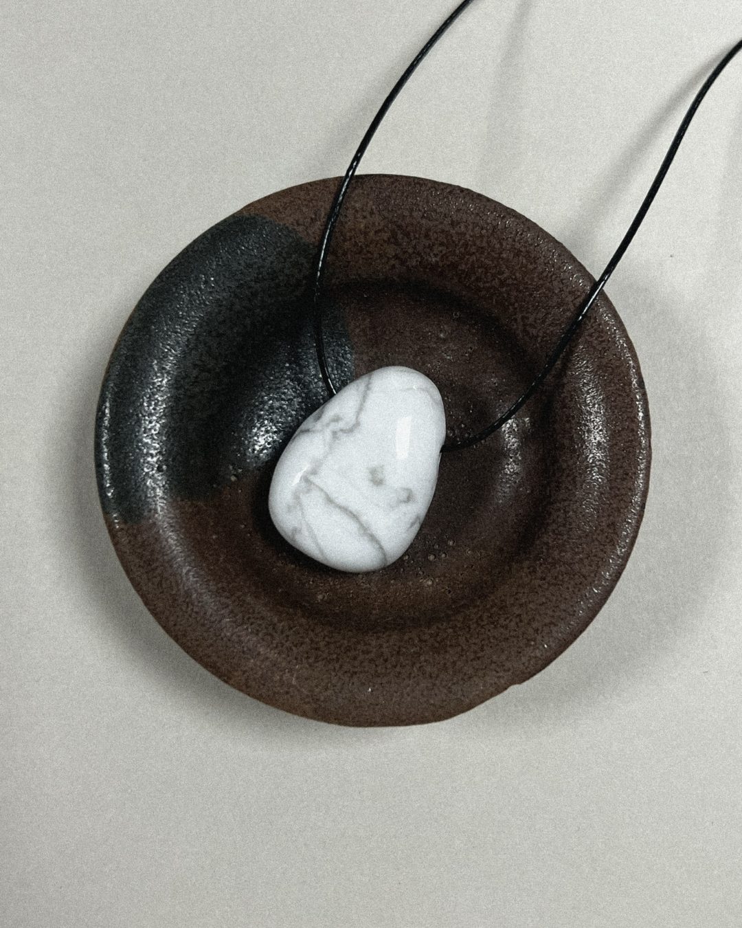 Howlite is associated with calm, patience, and clarity of mind. Its soft white surface with natural grey veining is thought to ease stress and encourage emotional balance, offering a quiet sense of peace and perspective.