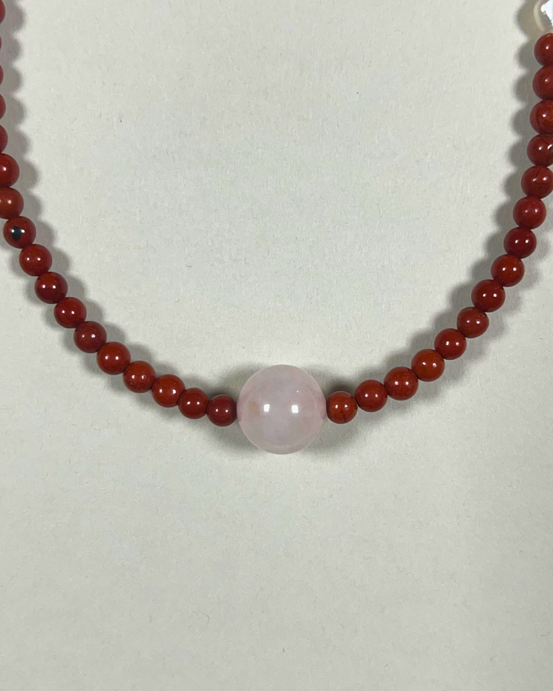 Unfurl 4 - Red Jasper & Rose Quartz Necklace