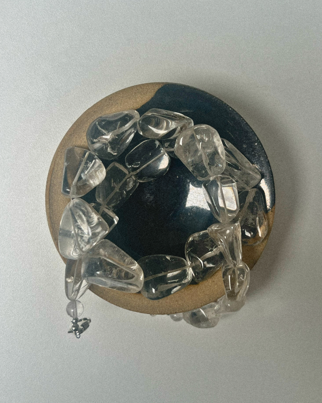 Clear quartz is often known as the 'master healer' - used to amplify energy, intention and inner clarity. It brings a sense of openness and renewal, encouraging balance and focus. This piece feels radiant, energising and quietly powerful - a timeless, light-filled statement.