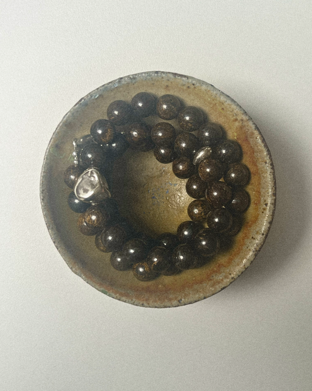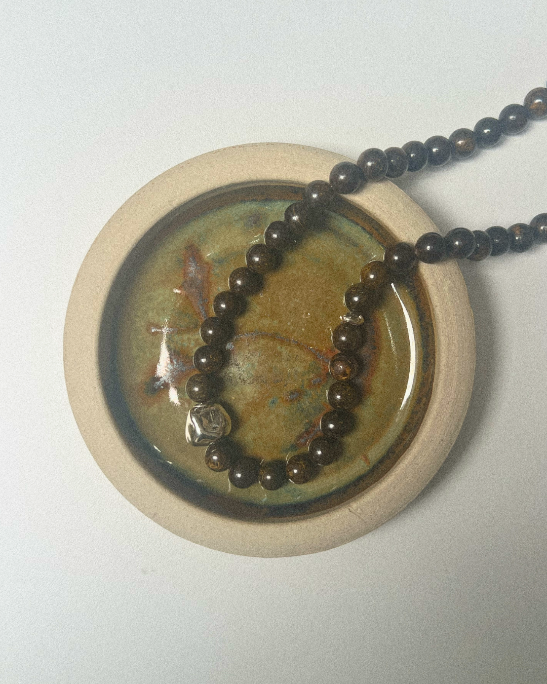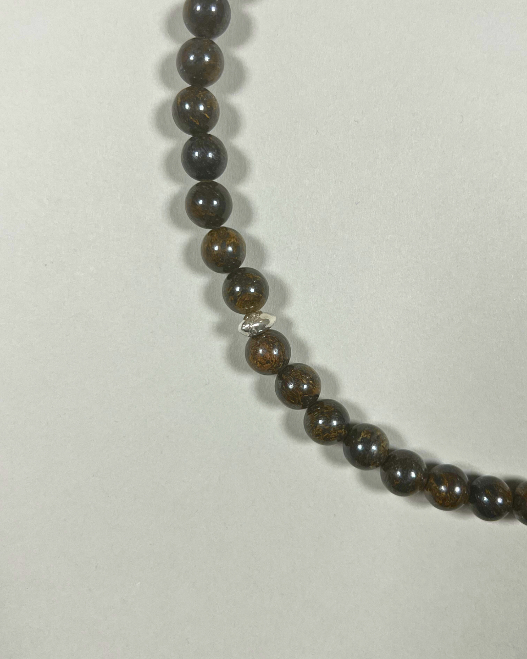 Bronzite is associated with stability, strength, and resilience, offering a steady, grounding presence. Silver adds reflection and balance, enhancing the depth of the strand with a subtle brightness. Together, they create a piece that feels strong yet composed - grounding, protective, and quietly empowering.