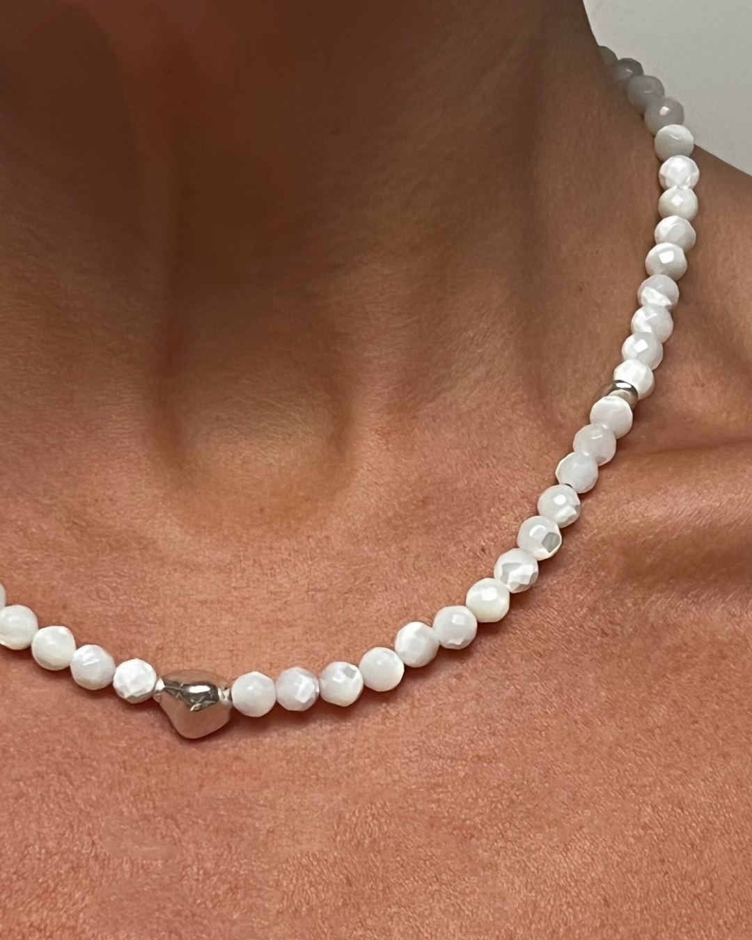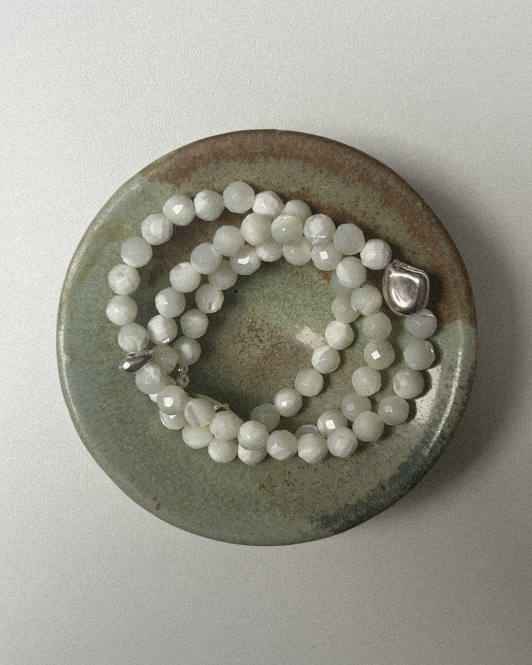 Mother of pearl is associated with calm and reflection, offering emotional balance and intuition. Silver brings harmony and grounding, enhancing the natural glow of the pearl with quiet luminosity. Together, they create a piece that feels soft yet steady - luminous, balanced, and quietly nurturing.