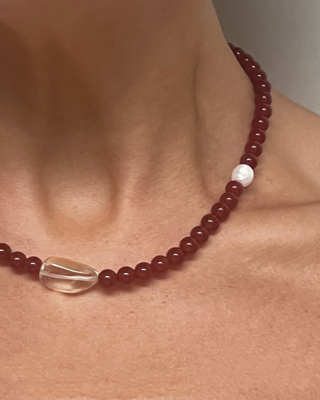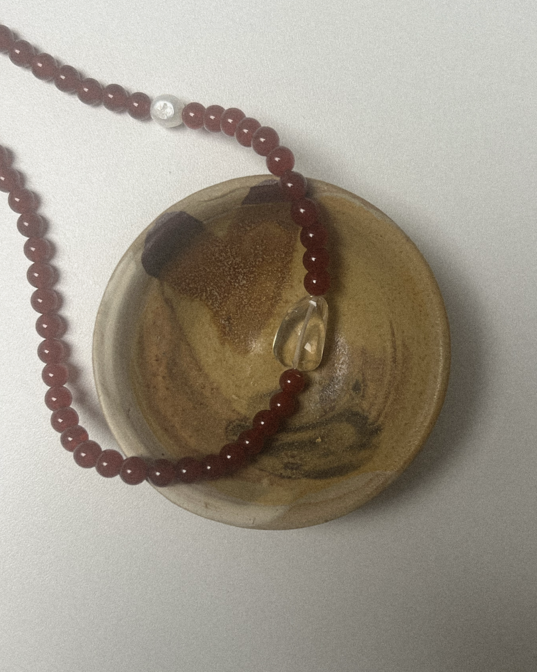 Carnelian is linked to vitality, confidence, and creative energy, offering warmth and motivation. Citrine is associated with clarity, optimism, and creativity, while pearl brings calm and reflection. Together, they create a piece that feels vibrant yet balanced - energising, radiant, and quietly harmonious.