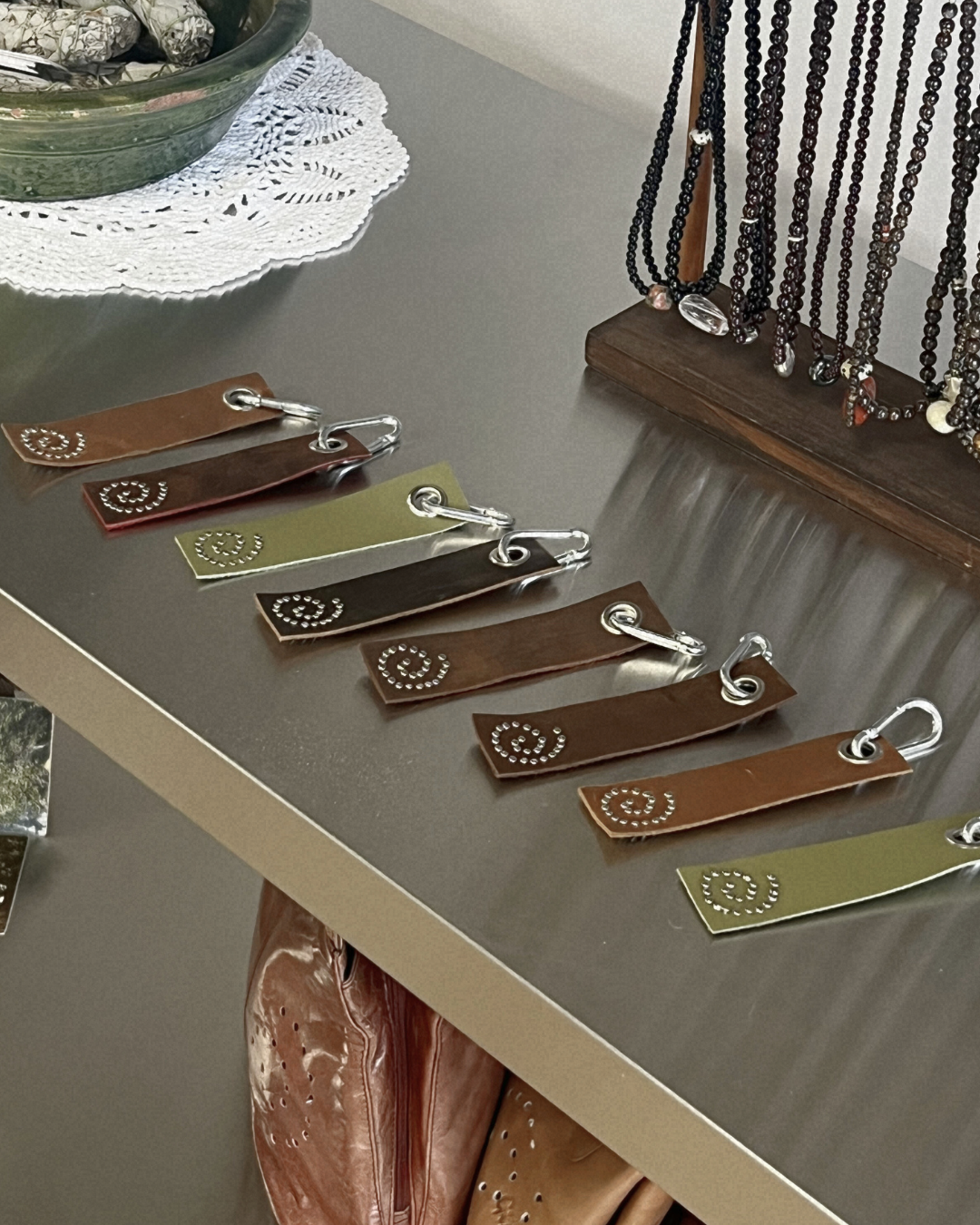 These pieces were created as part of an ongoing effort to use up leather scraps from other studio projects. Each one is cut, assembled and finished by hand, allowing the material to be used thoughtfully rather than discarded.