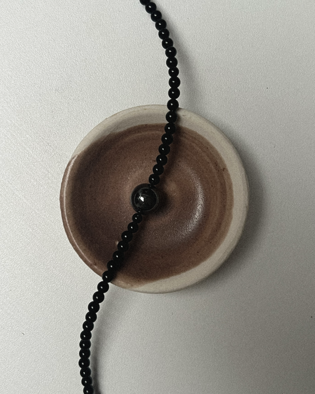 Onyx is known for its grounding depth and quiet composure, offering steadiness and strength through its smooth, polished black tone. Hematite adds a sense of balance and focus, often associated with anchoring and protective energy. Together, they create a piece that feels strong, centred, and quietly assured.